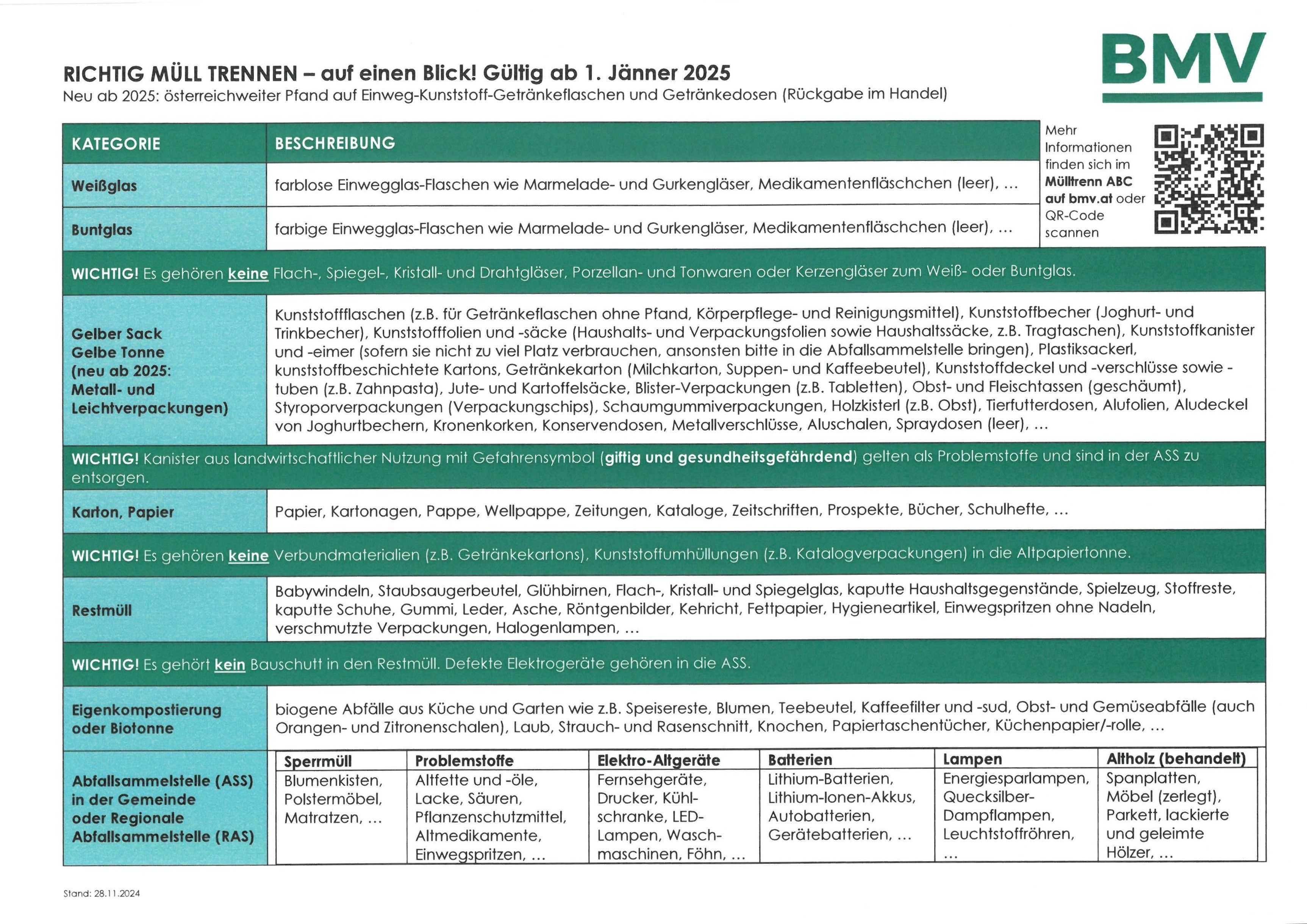 Ab dem Jahr 2026 wird die Gebühr für die Benützung der Abfallsammelstelle auf € 50,00 pro Haushalt angehoben.